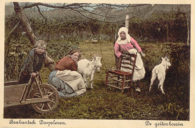 Was er te weinig grond rond de woning om de dieren op te laten grazen, dan werd ook deze ‘koe voor arme mensen’ langs de kant van de weg te grazen gezet. Vaak lag de geit dan aan de ‘tuir’, een lijn aan een paal. Was het gebied rond de paal afgegraasd, dan werd het dier gewoon verplaatst.