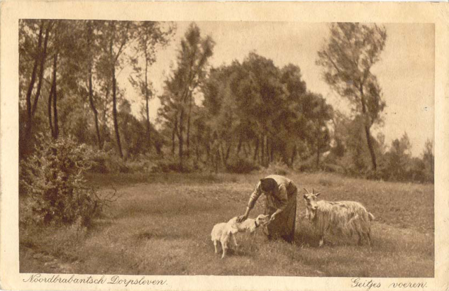 N.Br. 12 Boerin met bok en geit op landweg (Den Dungen)