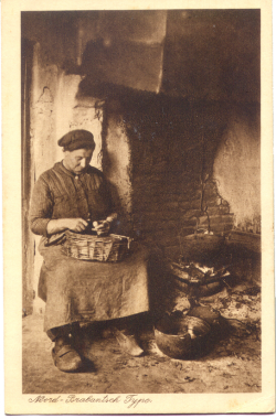 N.Br. 7 Twee boerinnen met poffer bij schouw
