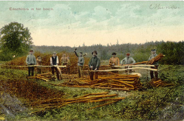 Schoenmakers en later ook de leerverwerkende industrie gebruikten leer voor hun producten. Om huid als leer te kunnen verwerken, moest het eerst gelooid worden. Door het looien werd de huid soepel en het ging bederf tegen. De schors van eiken bevat looizuur en eikenschors werd daarom tot ongeveer 1900 gebruikt in leerlooierijen, lokaal gebeurde dat zelfs nog tot de Tweede Wereldoorlog. Na die tijd kwamen er chemische alternatieven om leer te looien.