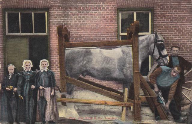De tweede kaart is in 1906 uitgegeven door het Noord-Brabantsch-Limburgsch Kaarten-Magazijn te Asten. De smid op de foto zou hoefsmid Gerrit van Eersel zijn, die het paard beslaat van Driek Berkers van het kasteel van Asten. Een smid had toen een belangrijke functie in het dorp; alles van ijzer werd door hem gemaakt. Als een paard opnieuw beslagen moest worden, werd die in een hoefstal geplaatst, zoals op de ansichtkaart te zien is, en werden de voeten bijgewerkt, de hoefijzers in pasvorm gesmeed en bevestigd. Ook het ijzer van de ploeg die tegen de hoefstal staat, was het werk van de smid.